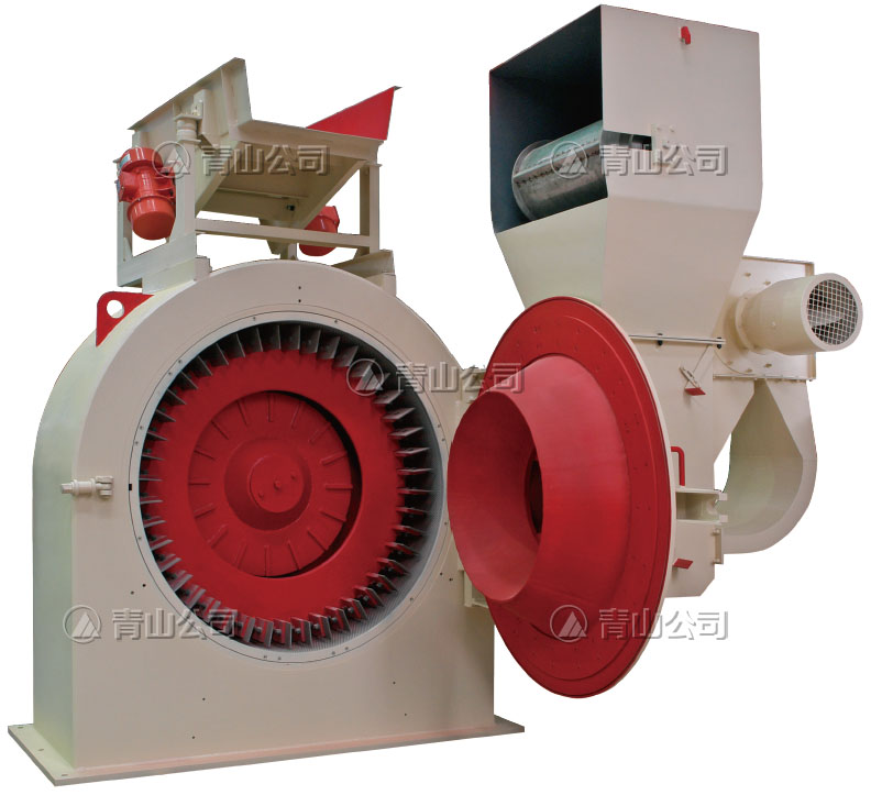篩環(huán)式打磨機主要進(jìn)料系統(tǒng)和打磨系統(tǒng)組成,前者主要由振動給料器、磁選滾筒、重物分離器組成;后者主要由機座、磨篩環(huán)、葉輪、主軸、驅(qū)動等組成。